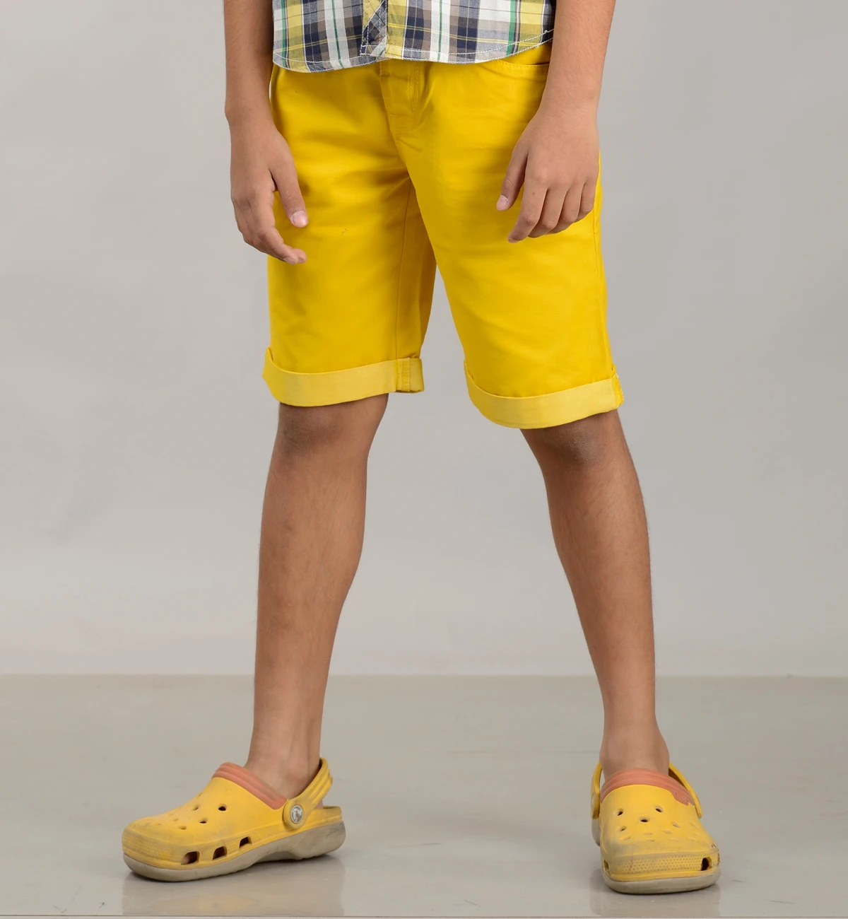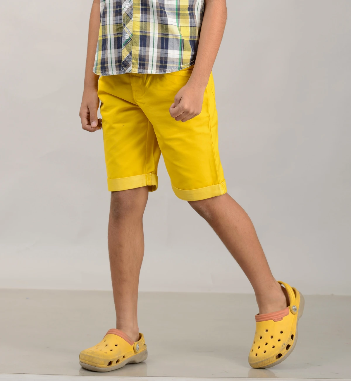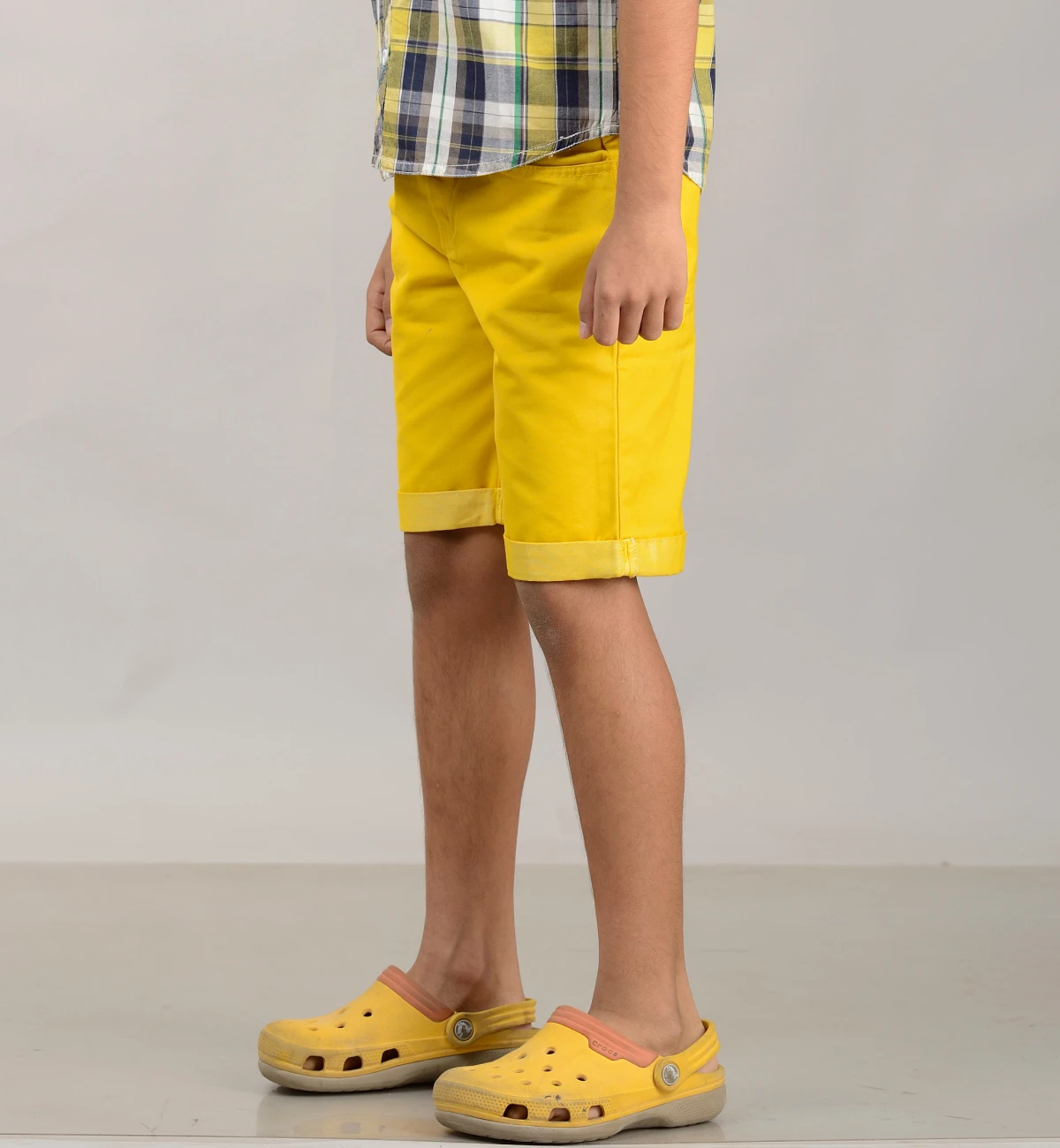 Boys’ Cotton Shirt with Bright Yellow Shorts