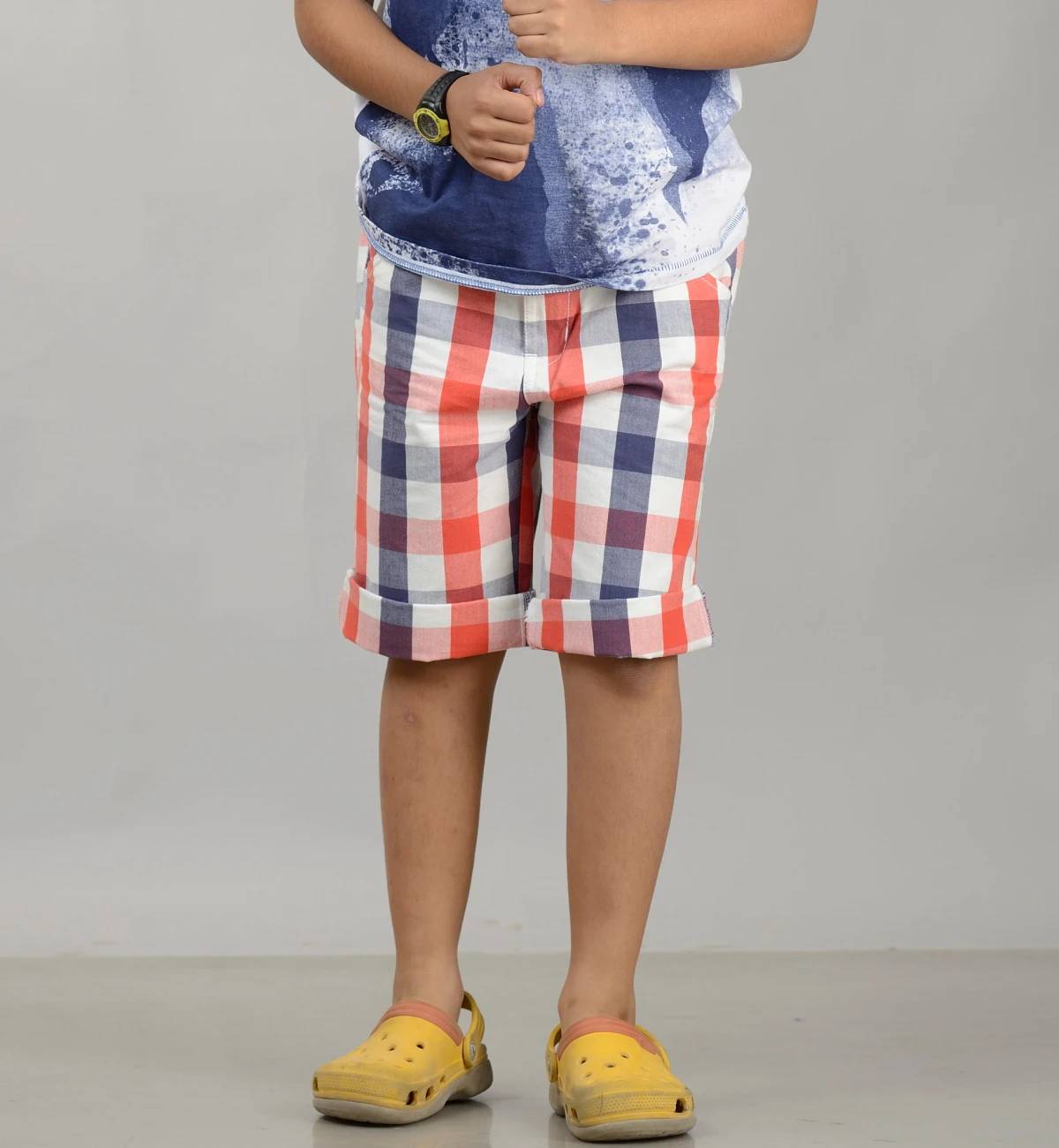 A stylish boys’ outfit featuring a white-and-blue digitally printed T-shirt paired with classic checked knee-length shorts for a coordinated, playful look. Designed for everyday comfort and easy movement, this set is ideal for active wear and casual outings. Colours, prints and fabric options can be customised as per requirement.