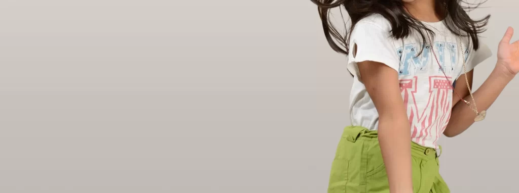 A comfortable girls’ outfit featuring a soft cotton–rayon blend top paired with simple, easy-wear green shorts. Designed with minimal detailing for a clean, everyday look while ensuring plenty of comfort and movement for active wear. Colours, fabrics and design elements can be customised as per requirement.