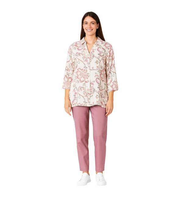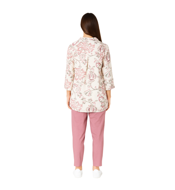 Fresh and lightweight tunic crafted from 100 percent cotton, featuring a subtle white printed design for an easy, everyday look. The relaxed silhouette offers breathable comfort and effortless styling for casual wear. Custom choices in prints, colours and finishing details can be arranged as needed.